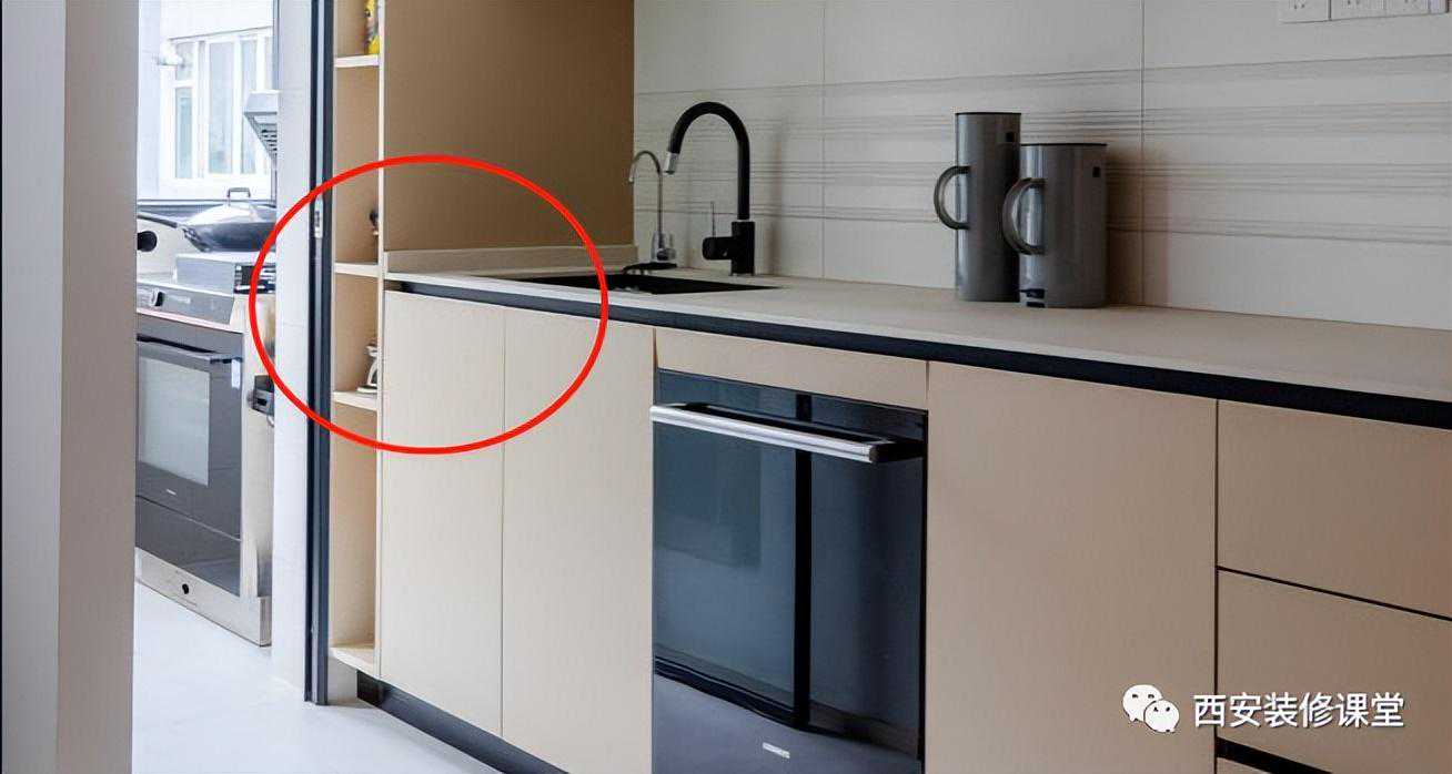 ▲厨房镶嵌电器的非常多,此时的尺寸其实和电器有很大关系,例如冰箱,一定要购买下散热或者后散热,千万不要购买左右散热,这样就会导致定制必须留出很大的空隙,难看不说而且浪费空间。所以严丝合缝镶嵌一般做法是左右最多留出5mm的缝隙,这样才能更美观,不浪费空间。实际操作还得考虑柜门的开启方式以及内部抽屉拿取的空间,并没有那么简单。