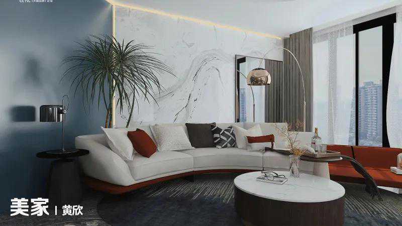 空间整体色彩搭配丰富有层次,客餐厅用大面积的白色奠定简约基调,家具软装上则采用橘红、珊瑚粉、橙色等明亮色做点缀,加上金属、大理石等轻奢元素的运用,给人一种热情活力的感觉。
