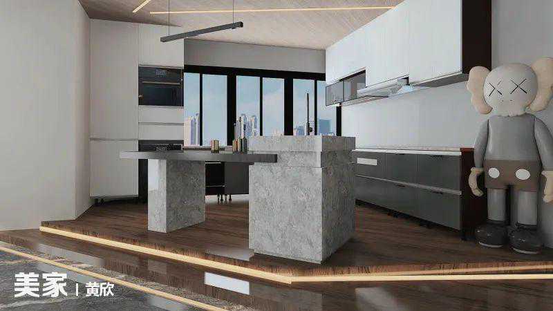 整体色调是水泥灰色系,让人有种置身原始自然环境中的轻松感。搭配浅色素雅的软装,整个空间层次分明、舒适自然。开放式厨房、衣帽间、书房等功能区完备,充分满足现代人的生活需求。