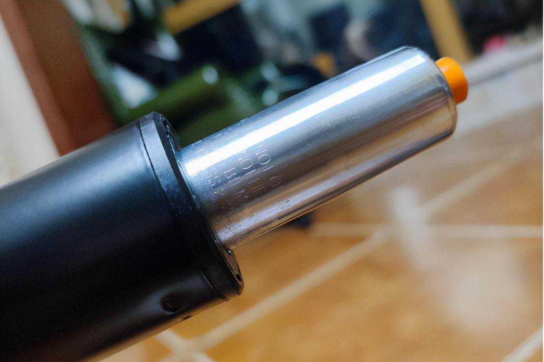 由于这是一款可以调节高低的办公椅,所以气压杆自然是不可或缺的,在气压杆上可以看到上面的钢印标识,查询之后得知这款宝华贝轩品牌的办公椅气杆是经过了SGS认证的三级安全气杆,所以在品质和安全方面,还是有保障的。