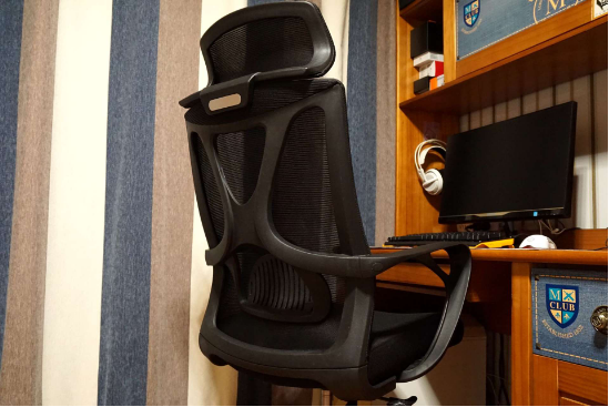 再来说说靠上去的感觉,靠背是网面的材质,所以回弹性和透气性是非常不错的,向后靠的时候也并没有过硬的感觉。整个靠背呈现S形的曲线,这样的设计正好和人体的脊椎相契合,尤其是腰部凸起的位置,能够与身体完美的贴合,起到了不错的支撑效果,这种支撑的效果能够大幅度承担身体的压力,让腰部的肌肉得到放松,所以即使久坐也不会感到乏累,