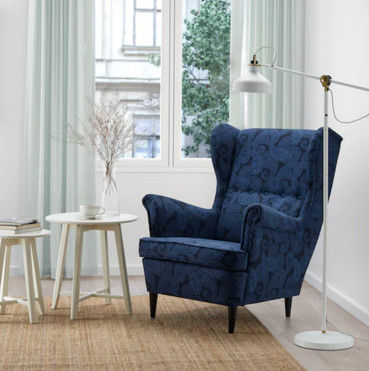 宜家经典的扶手椅,海蓝色的垫套沉稳大气,整个垫套100%纯棉制作,里面暗藏花纹很精致,坐感舒适度很不错。