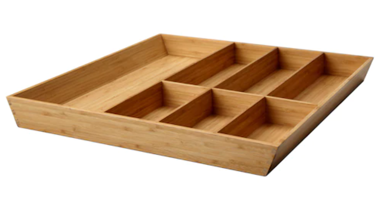 这款采用竹子制作,充满天然温馨之感;餐盒内里的分隔可以根据刀叉筷子不同长度来分类,方便快速拿取。