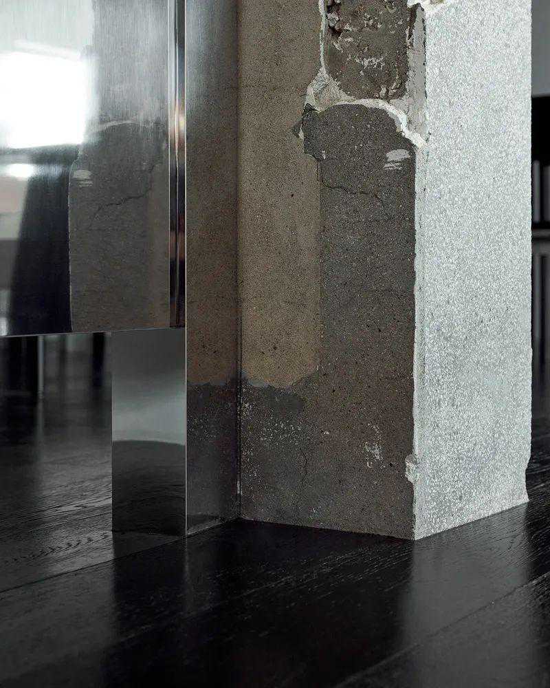 它基于黑色木质材料,可以拥抱寒冷和温暖。一进门就吸引眼球的墙,通过打磨可以看到混凝土表面。植物的对比给人一种更舒适、更温柔的感觉。