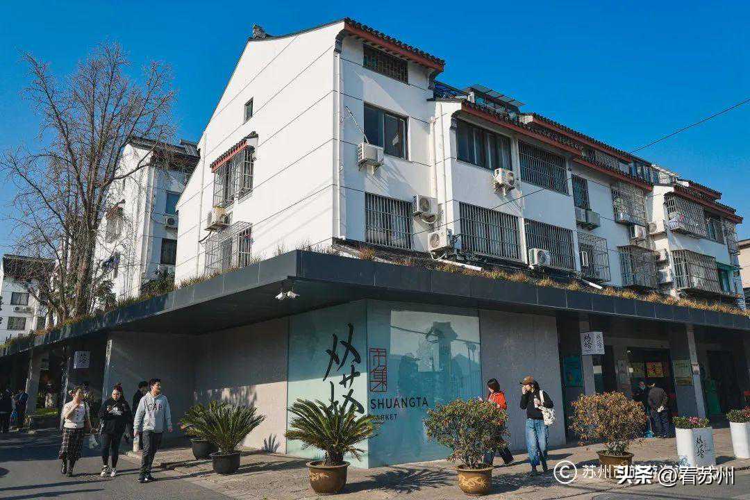 双塔市集:姑苏区石匠弄2号双塔市集离平江路、双塔、定慧寺等景点不远,是许多游客来苏旅游必打卡的地方。市集由老双塔菜场改造而成,设计上兼具艺术美感与烟火气。复古风的“双塔”二字LOGO非常引人注目,灵感来自于中国古代数字系统“苏州码子”,在菜场内“苏州码子”的元素也随处可见,在许多的细节之处体现苏州的历史与风韵。