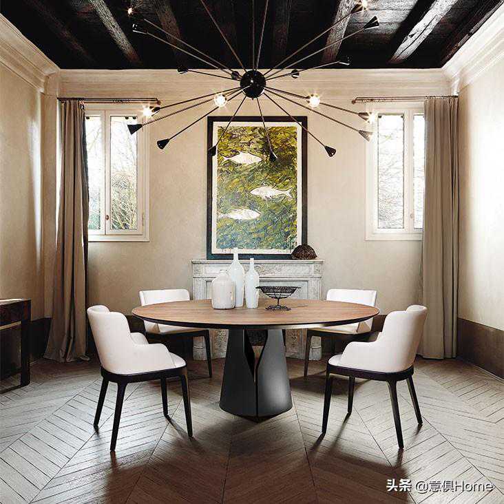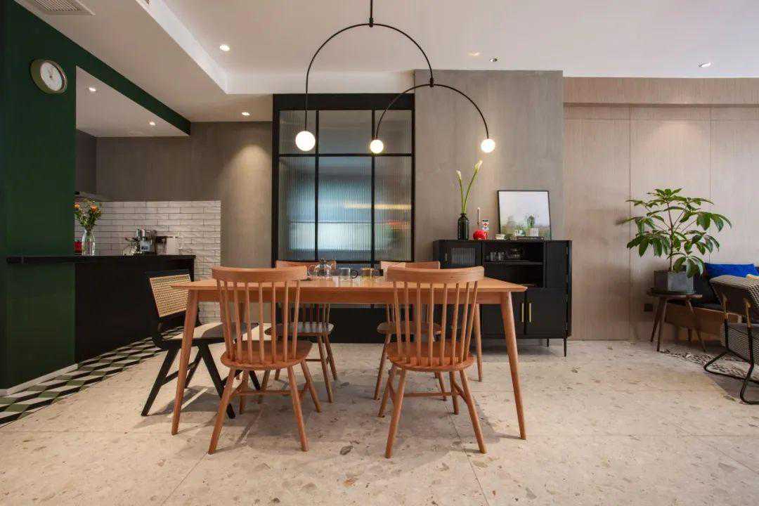深木色的餐桌椅,比如胡桃木质感的,营造出来的用餐氛围更加沉稳端庄,适合一种风格比较成熟的设计,而且这样深木色结合现代简约的造型设计,可以带来现代大方与沉稳高档的质感,却不会显得笨重,也是一种比较多人喜欢的设计。