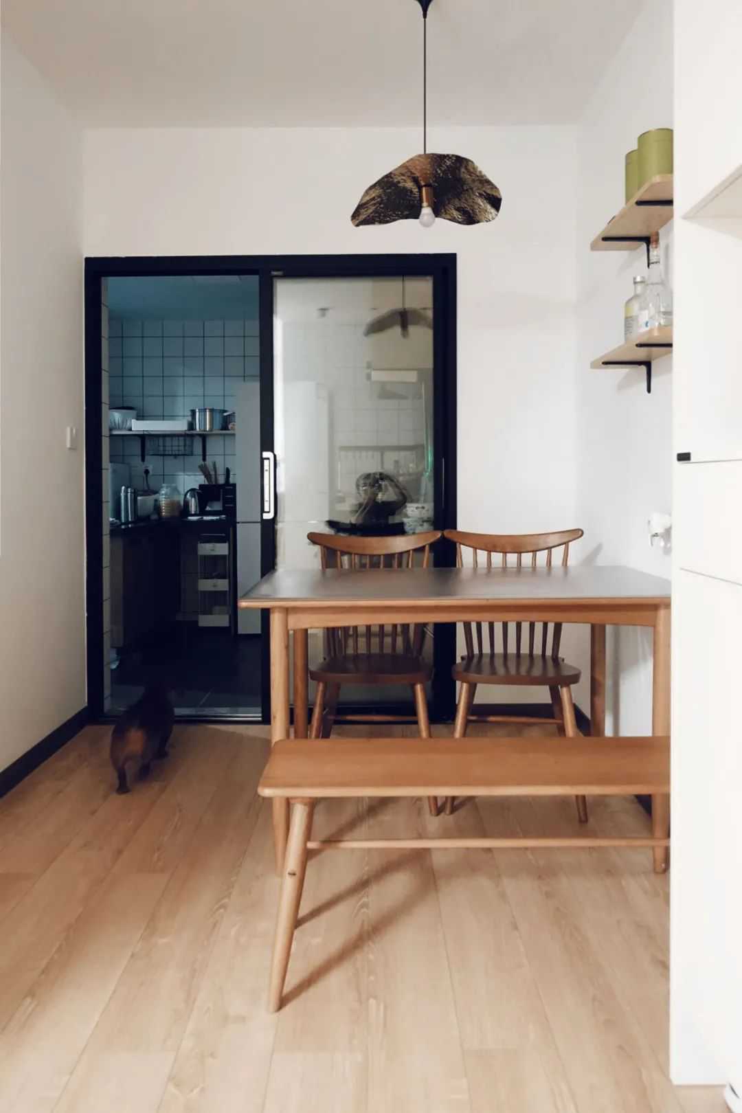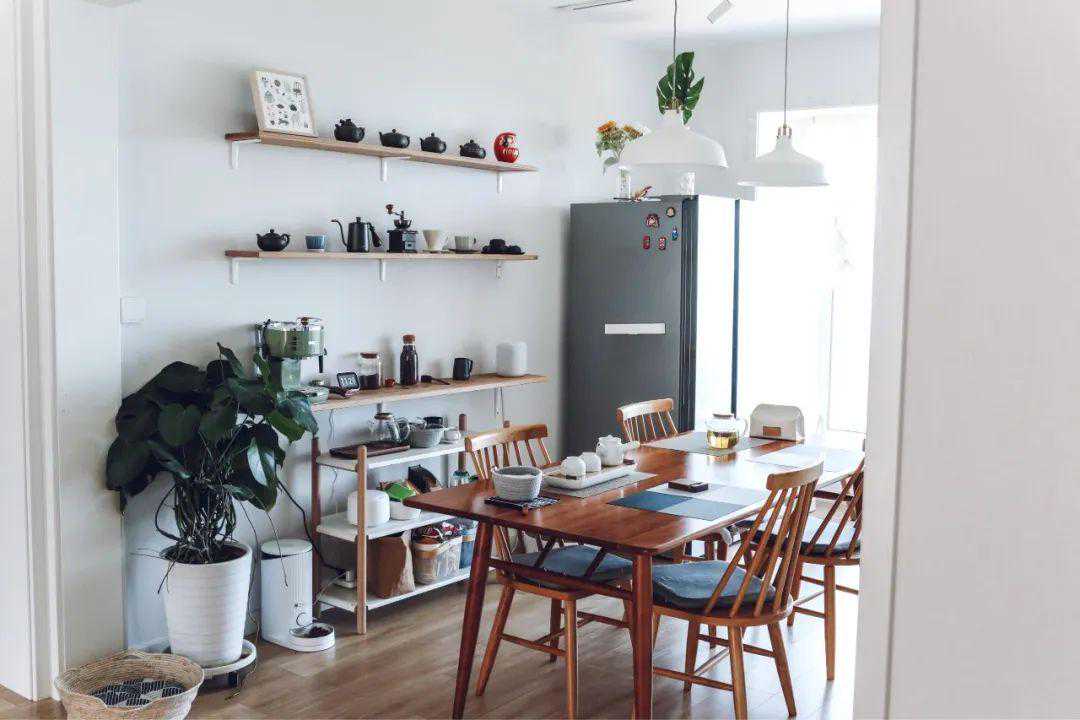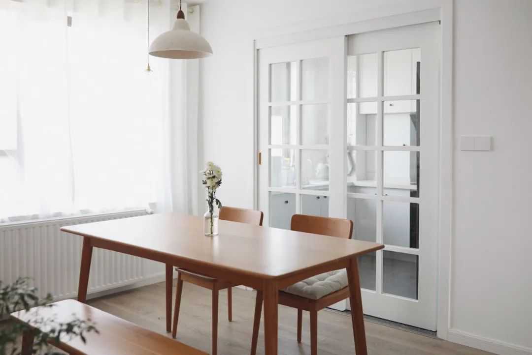 浅木色的餐桌椅,比如橡木、白蜡木等为原材做的餐桌椅,整体色调就比较偏白、浅淡,搭配在简约的浅淡色调的空间里,给人的感觉也是比较舒适精致,相对来说这类木材的餐桌椅价格也会比较适合年轻人。
