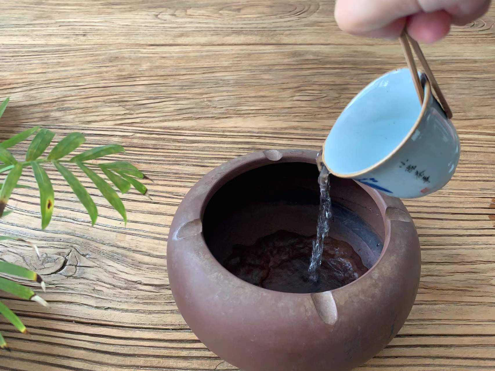 不过,倒废水的时候,就不能太自由了,不能往茶盘上泻,必须要统一收集在茶盂里。