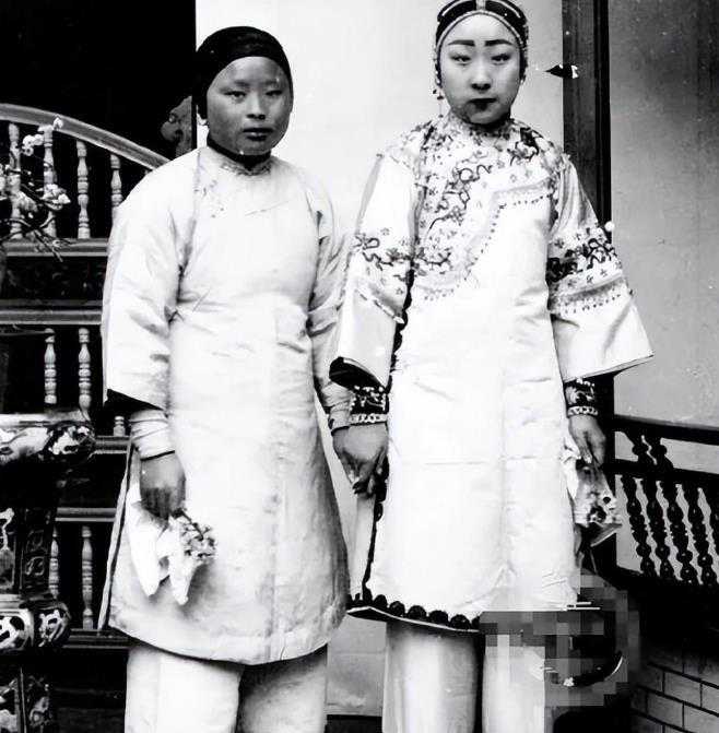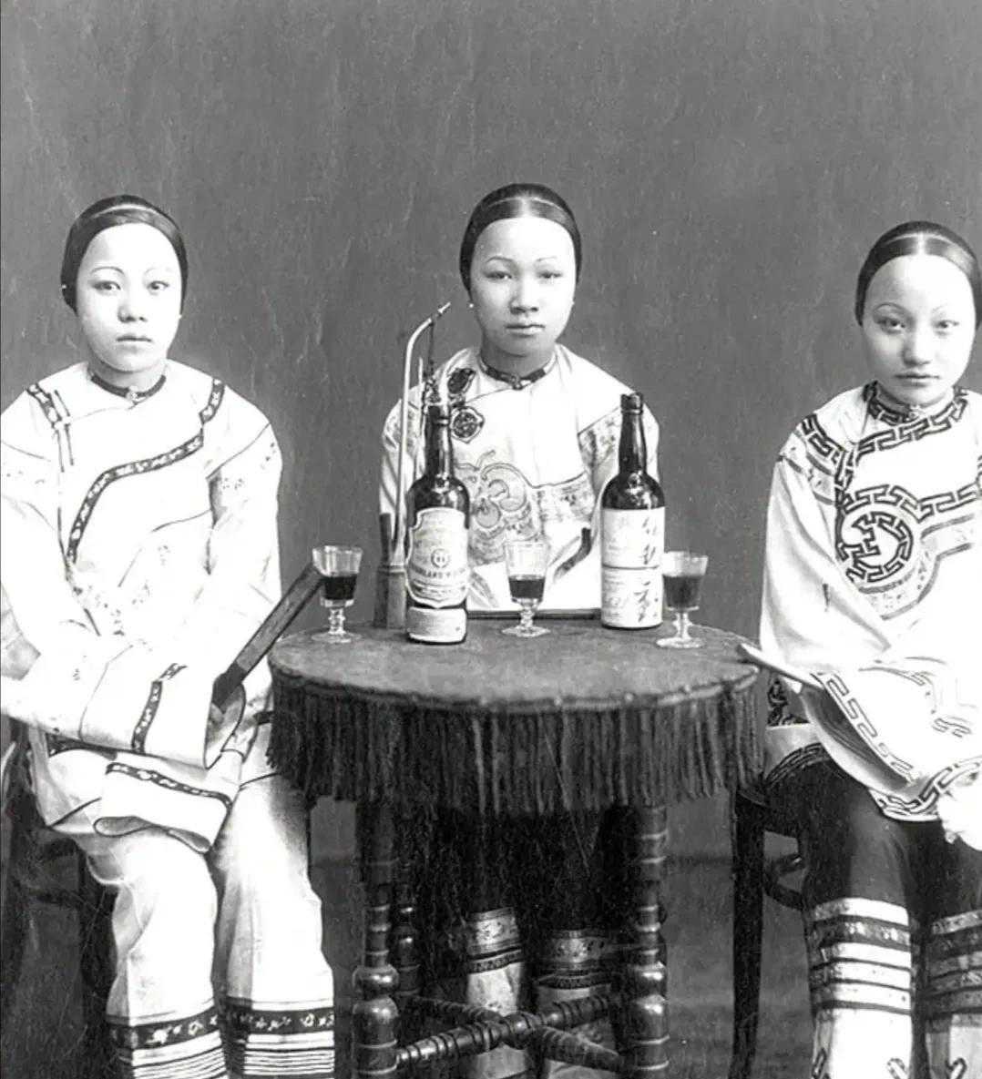 22、喝洋酒的三位清朝女子,衣锦华服,面容娇美。在照相机的面前,人的表情都很呆滞