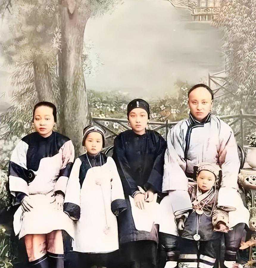 35、一户有钱人家的合影,一妻一妾,长得清秀漂亮,儿女双全