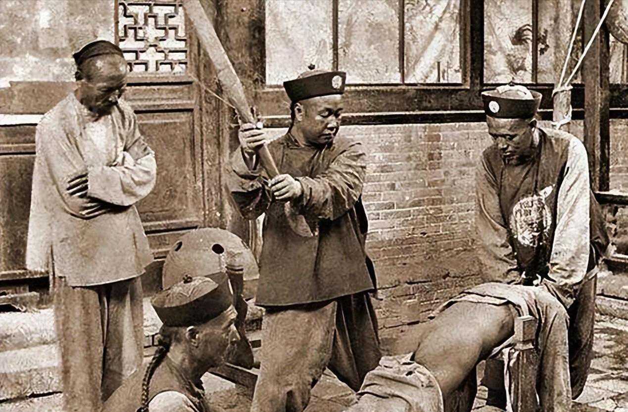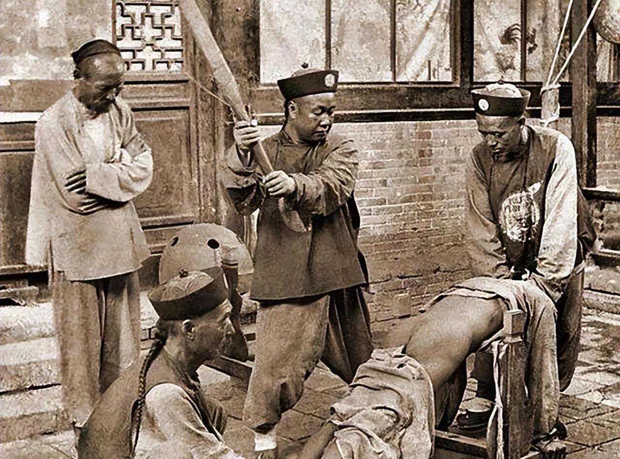 8、1900年,清朝末年,执法人员酷刑拷打囚犯,用粗棍将他们赤身裸体殴打!