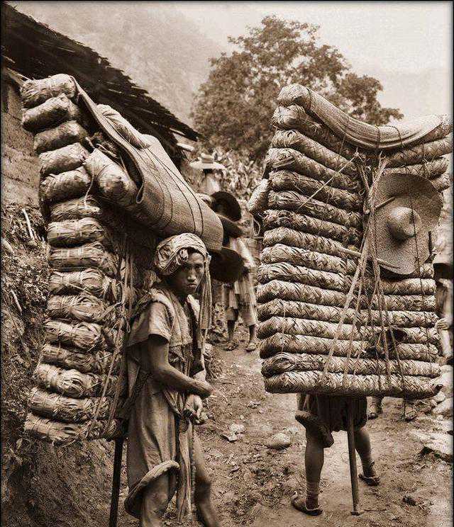41、身着非汉族服饰的四川民工不知道挑着什么去卖-副本