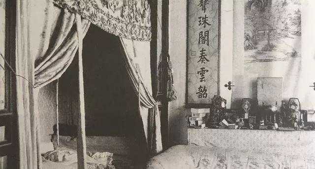 1924年冯玉祥驱逐溥仪出宫,溥仪出宫后养心殿后寝室的陈设情况,床帐前可见软包沙发。