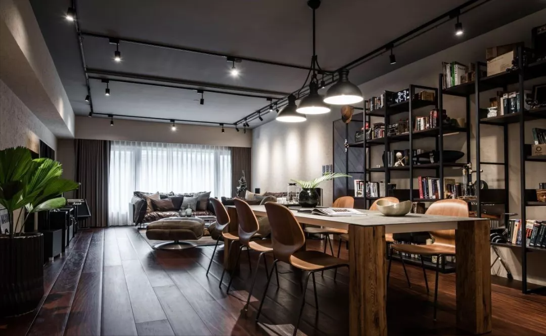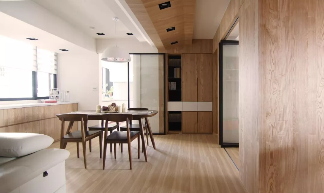 挑选黑胡桃、深色橡木、缅甸柚木或红山毛榉等等颜色比较深且纹理鲜明的木种作为空间基底,降低白墙的比例,添加如黑铁件、深色木柜和黑色类家具,凸显出的木纹就像是诱人的手炒黑糖浆一样,散发浓郁迷人的香气,让人想细细品味自然的甜。