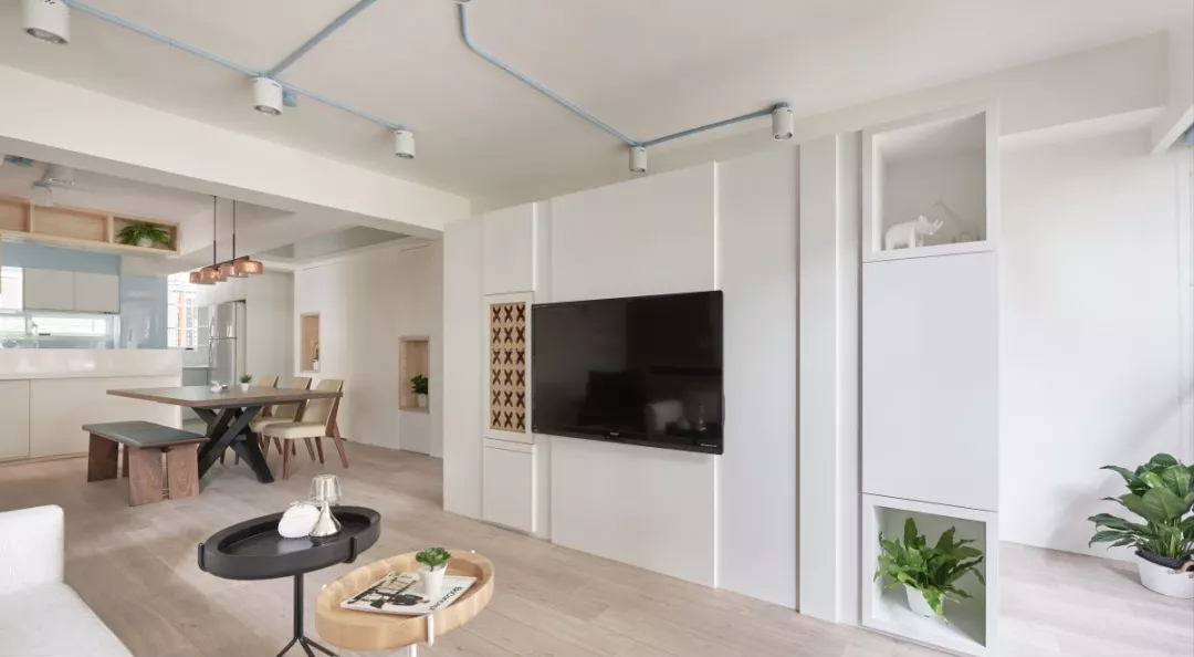 以白橡木或浅色类超耐磨木地板为基调,白墙和天花板填满空间上半部,搭配的家具也以浅色类、造型简单为主;适时添加一些翠绿色植栽或花束,淡淡的奶茶香衬托简单的摆饰,诠释天然纯粹的风格,享受无负担的生活空间。