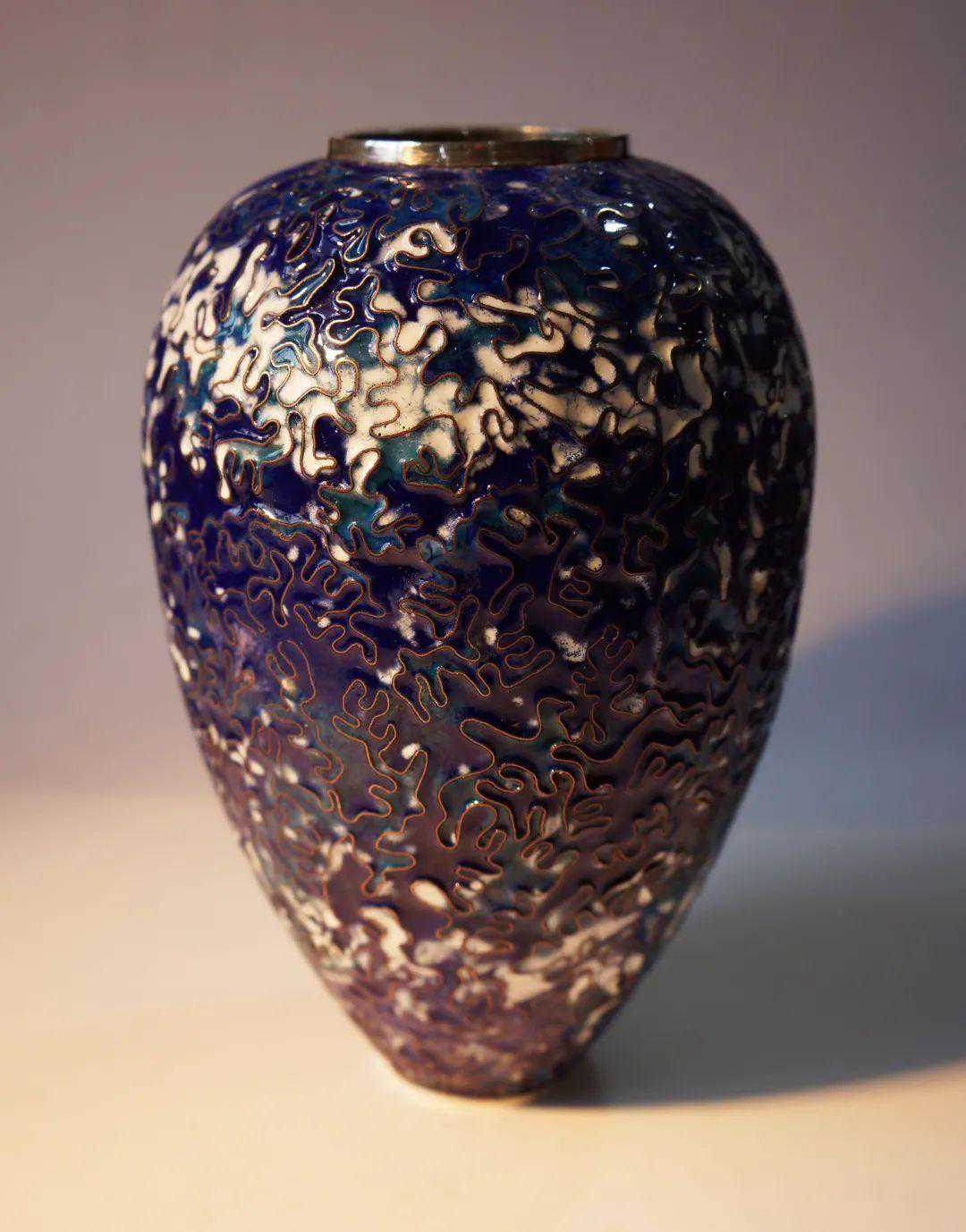 (左)程惠琴珐琅花器《浮光漾影》