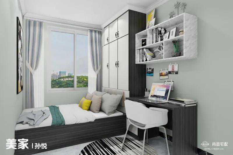 卧室用大面积的浅色扩大空间的可视感,儿子房色调活泼但不喧宾夺主,配色的灰度把握让整个空间明亮不失氛围感。