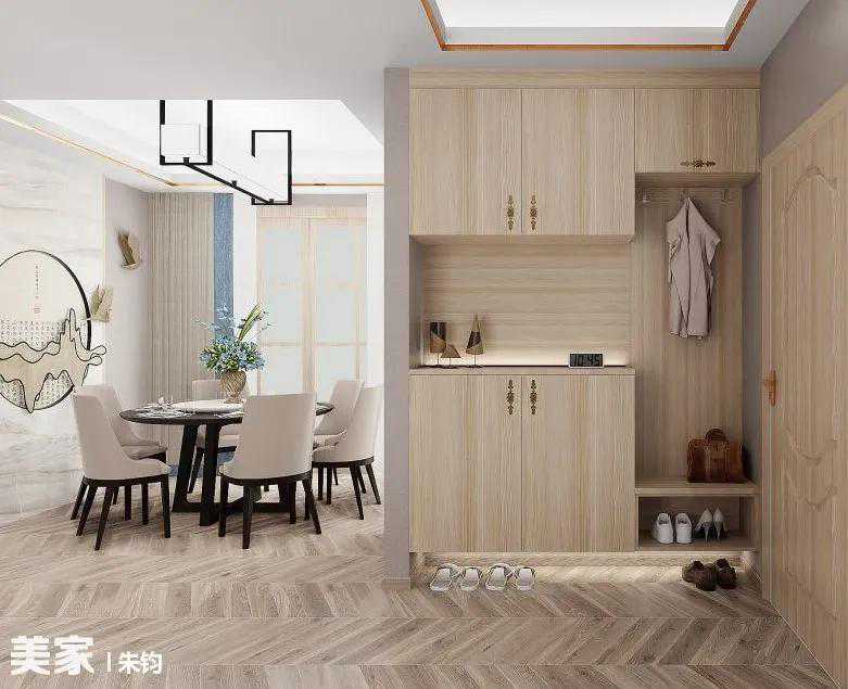浅色新中式风格更突出简约时尚的理念,用天然质感的原木来营造温馨的居家氛围。电视、沙发和餐厅的背景墙搭配也各有巧思,通过木雕、格栅、山水、花鸟等中式元素点缀,体现出独特的中国风。