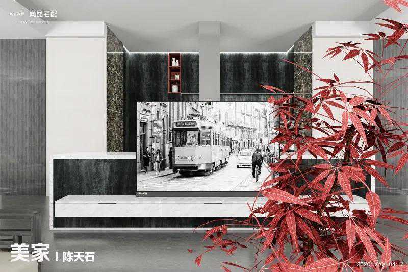 整体布局以居中方正对称为主,电视背景墙大胆采用故宫的宫墙锦红附着金属质感的边线和高级的大理石质感,提炼出故宫上元之夜的尊贵、奢华和活力。