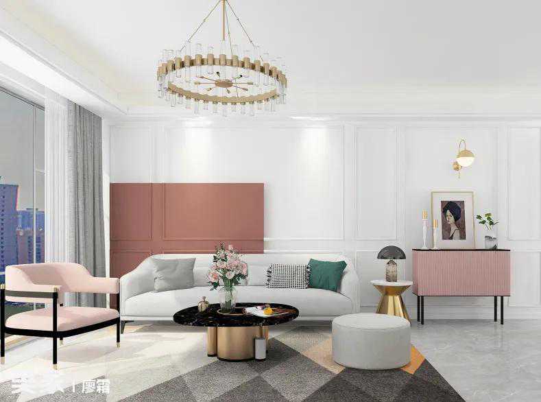 整体采用轻奢风格让空间更宽敞明亮,利用一些装饰性强的元素塑造温暖氛围。客厅极简配色,在各种线条形状的搭配下,显得层次丰富、温和清静。
