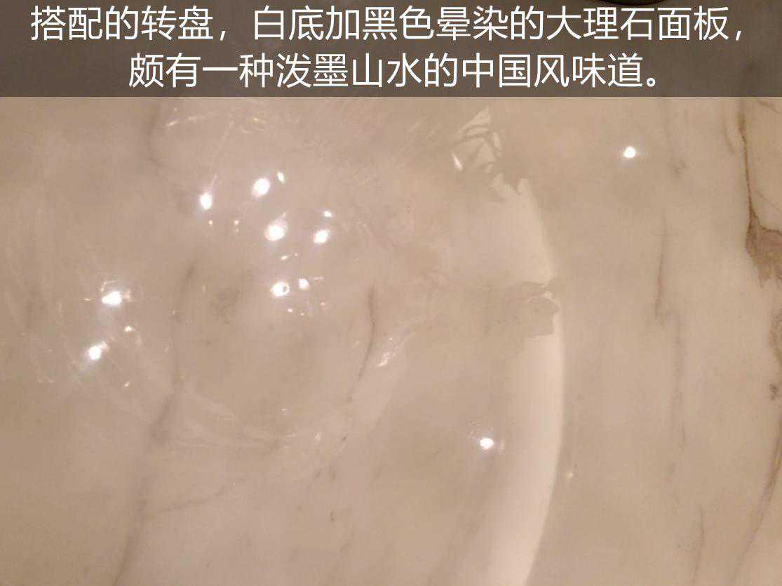 搭配的转盘,采用了白底加黑色晕染的大理石面板,颇有一种泼墨山水的中国风味道。