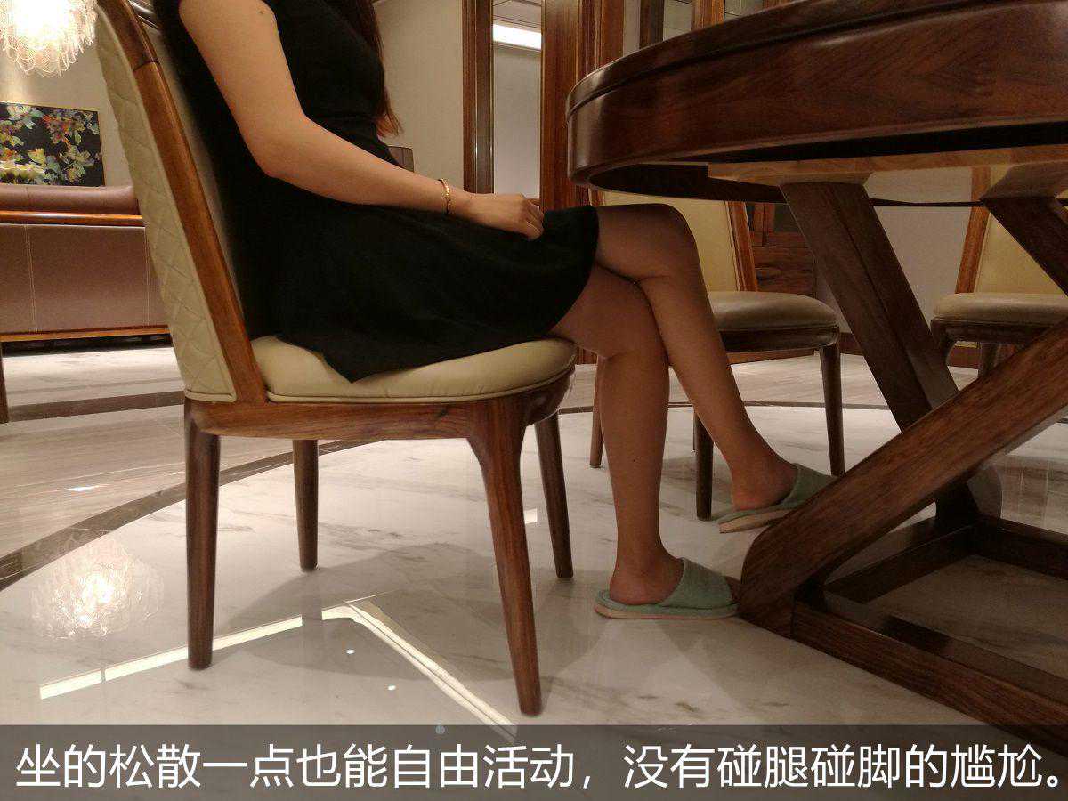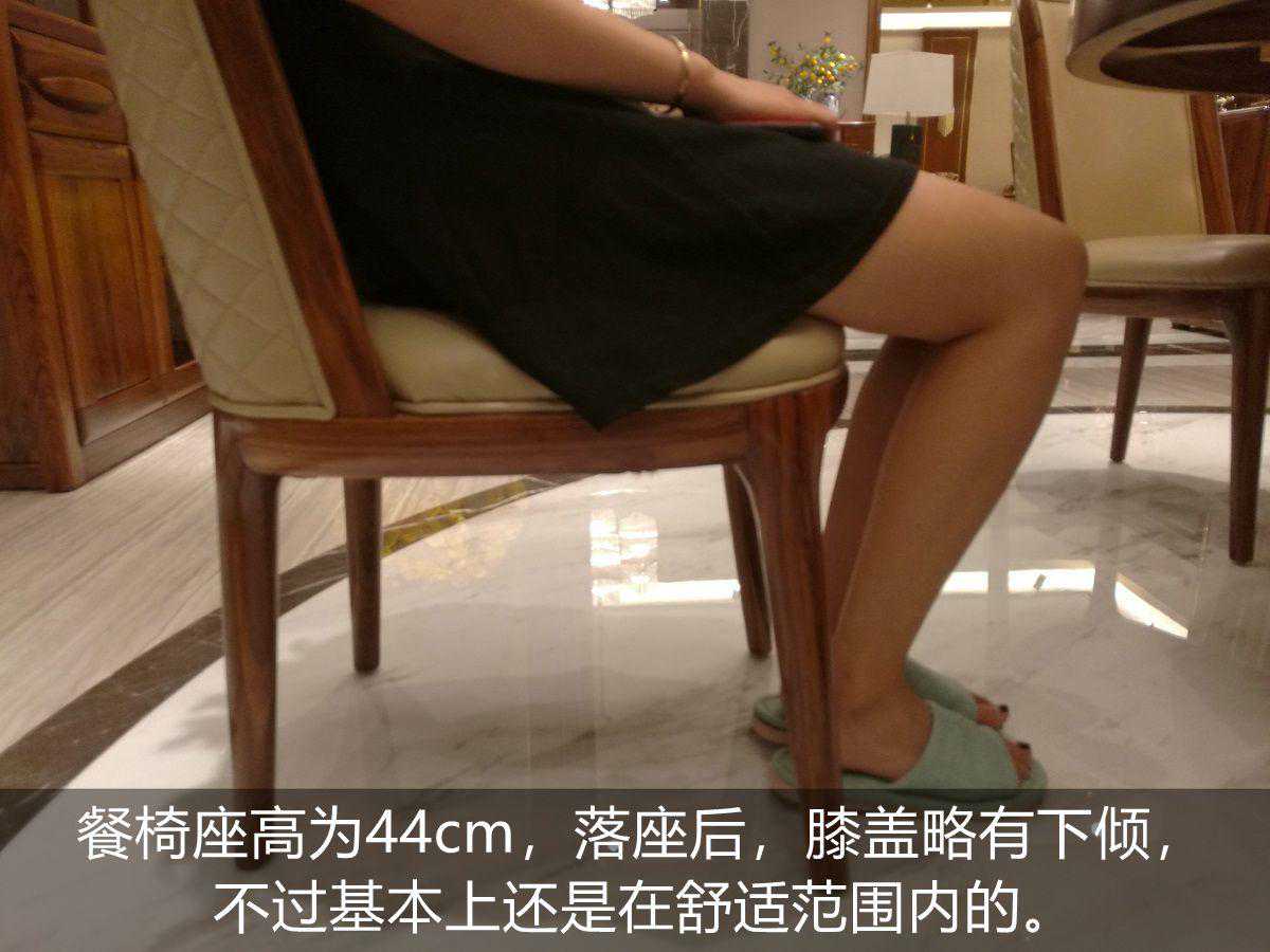 餐椅座高为44cm,落座后,膝盖略有下倾,不过基本上还是在舒适范围内的。