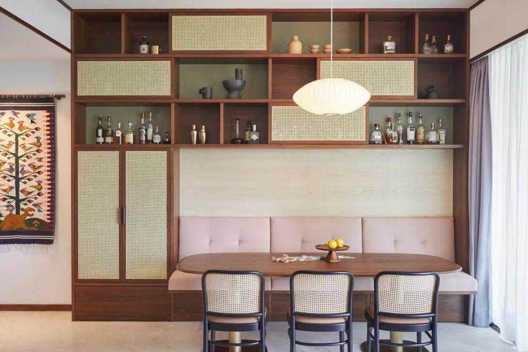 为了更舒适的用餐姿势,墙上设有软靠并且颜色与空间保持了协调。