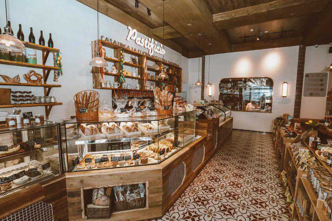 AlimentariMulino意式餐厅烘焙,以“熟食店+零售店+餐厅+酒吧+咖啡+烘焙”为核心概念开展空间布局。