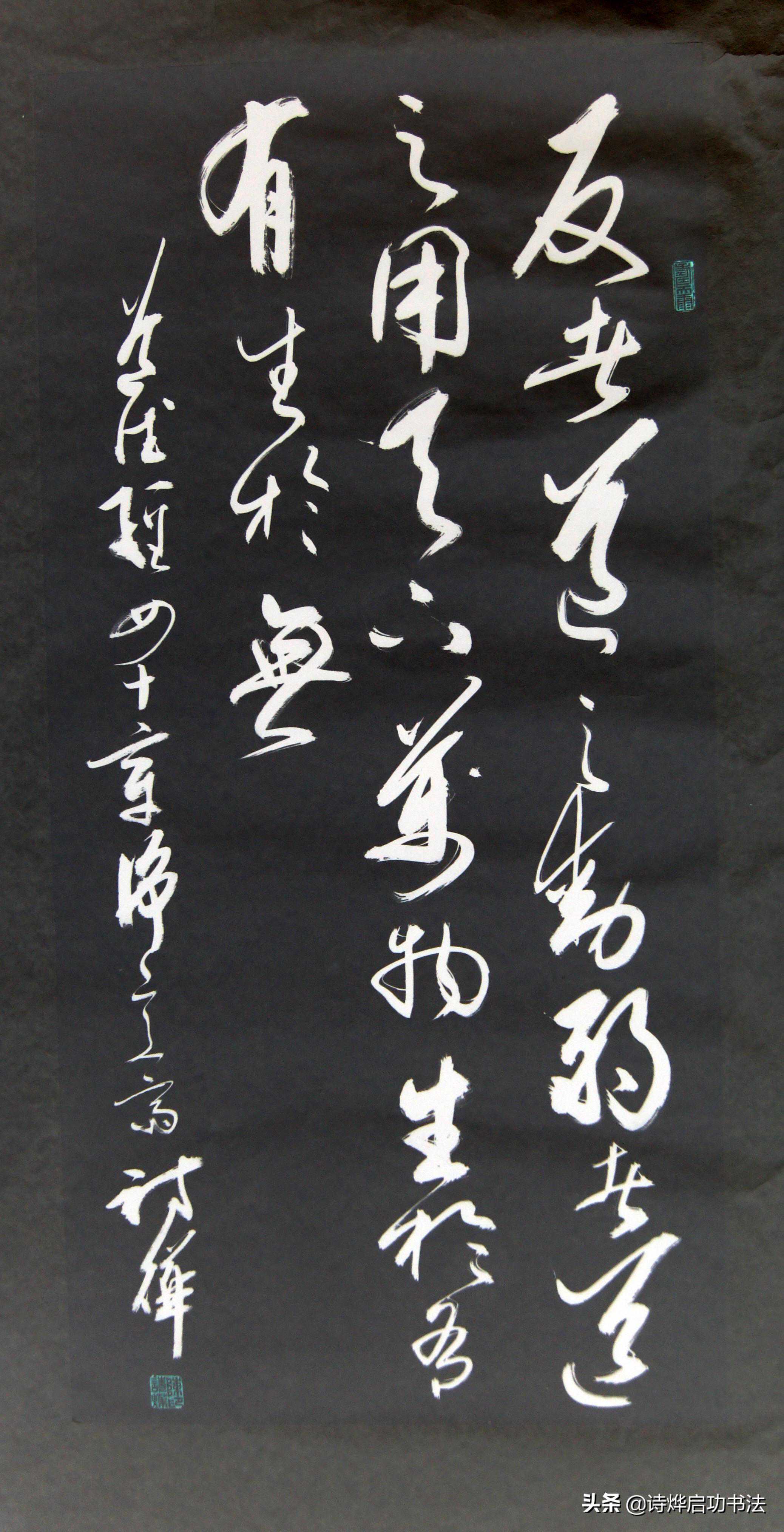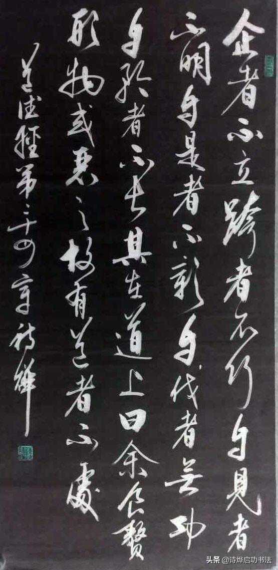 综合而论之,“书道”是指中国特有的在草书书写艺术中取法自然而囊括自然界万物的种种特征的本质而形成的独特的书写艺术。因为草书是纯意象的,字势生动,宛若天然,实得造化之姿,神变无极,妙造自然。草书合于天地自然之趣,有定和无定符合大极阴阳变化之数,有神明也有规矩,并非废弃规矩而放纵无度的。所以草书便是“道”,在书法史上,历来称为书圣的书家大多都一个杰出的修道者。故才有我与书法同行言:“诸君不入道,莫与吾论书”句。王羲之家族“世事张氏五斗米道,又精通书道”。王羲之的书法水平登峰造极,究其成因,与其信奉道教,有莫大的关系。加之东晋时期盛行的清谈之风,老庄思维占据着整个文人圈子,这使得道家的自由浪漫主义情怀与近乎自然的哲学思维快速影响着文化艺术的发展。其后的草书家如智永,怀素等都是佛门中人。所以唐以前,对书法一直称为“书道”。启功先生论书诗云:“真书汉末已胚胎,钟体婴儿尚未孩,直至三唐方烂漫,千红万紫一齐开”。确实,汉时草书已相当成熟了,但真书尚在婴孩,到了唐朝,真行草隶各种书体才完全成熟定型。楷法成熟,草书才逐渐被实用性较强的楷书取代,因为唐楷法度森严,便产生的另一种讲究法度的书写名称“书法”,所以论中国书法史,我们可以这样说,中国既有书道,亦有书法,并一直至现在。而日本仅有书道而无书法耳。