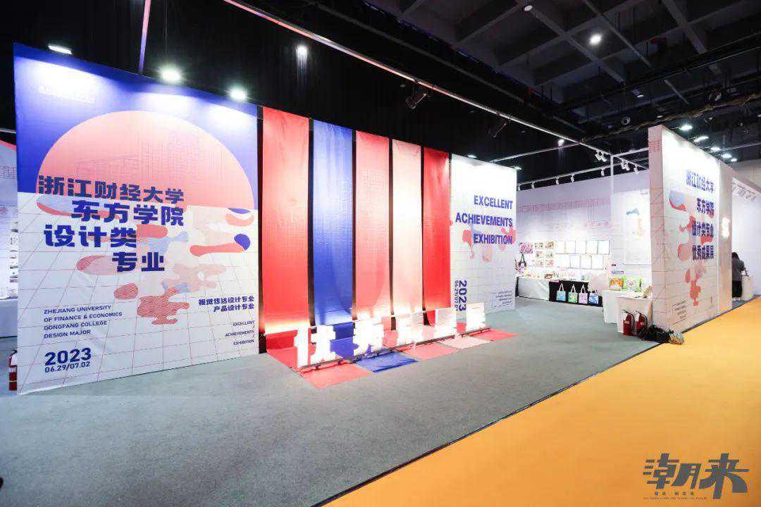 此外,浙江财经大学东方学院文化传播与设计学院成果展示区展陈了产品设计专业与视觉传达专业优秀毕业生的作品。据现场老师介绍,这些作品大多以“文化”为灵感,包括“海宁硖石灯彩”“辑里湖丝”“临海美食”“江南长城”“绍兴黄酒”等浙江、海宁的相关文化,以及西兰卡普、敦煌文化、苗族头饰、傣族文化、二次元文化等不同文化视角,为文化与时尚设计的融合,提供了更多创意思路。