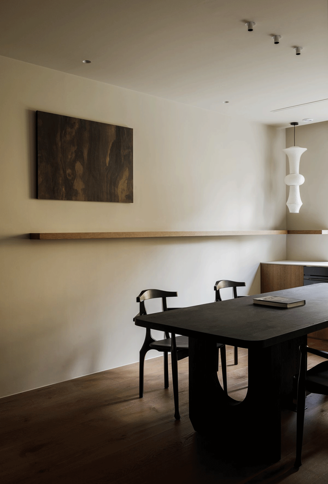 上至一层,这里属于餐厅及卧室的空间,木地板的温润与自然使空间更温馨。