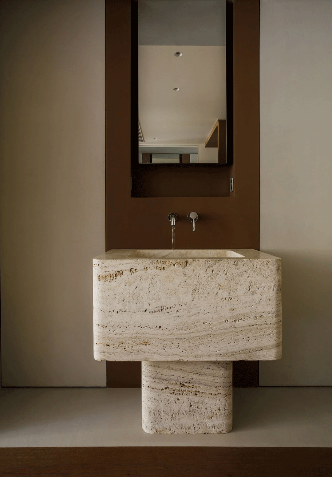 囙INDESIGN希望营造克制而自然的空间语言,对于空间的定义,希望是安静且纯粹的。因此在空间中大胆的置入了清水混凝土的浇筑结构,“我们喜欢粗粝的材质,也在不断的创新”。