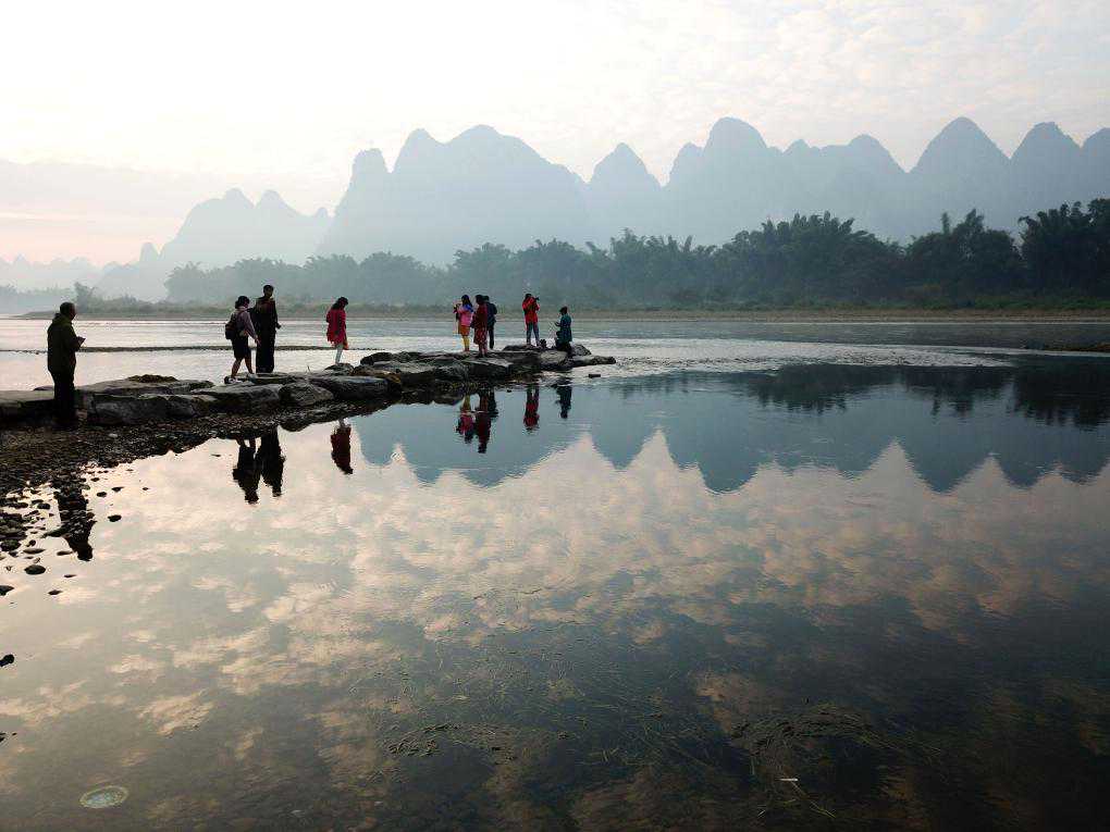 2017年拍摄的漓江。江面如镜,倒映奇峰。