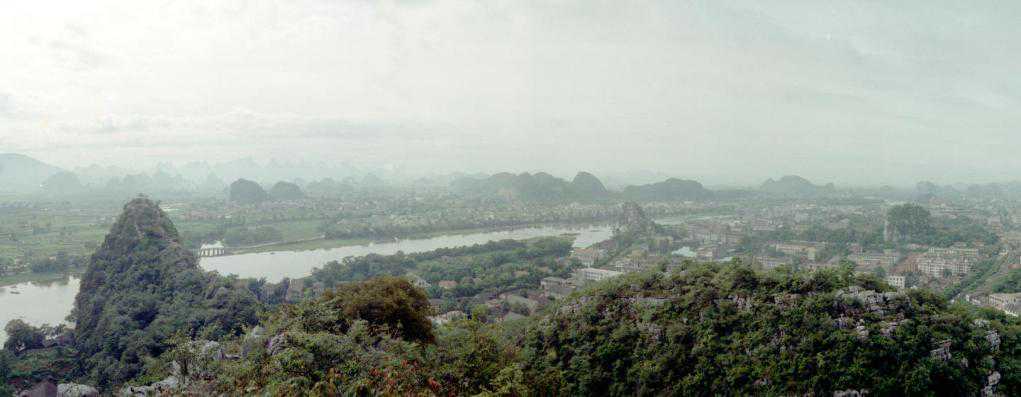 1991年拍摄的桂林,左为叠彩山,右为独秀峰,漓江从这两座山前穿越桂林城。
