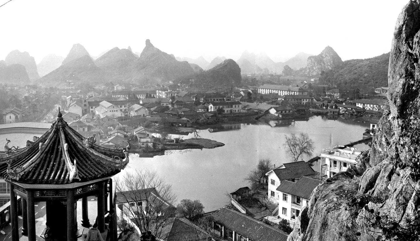 1955年拍摄的位于广西桂林漓江之滨的伏波山。