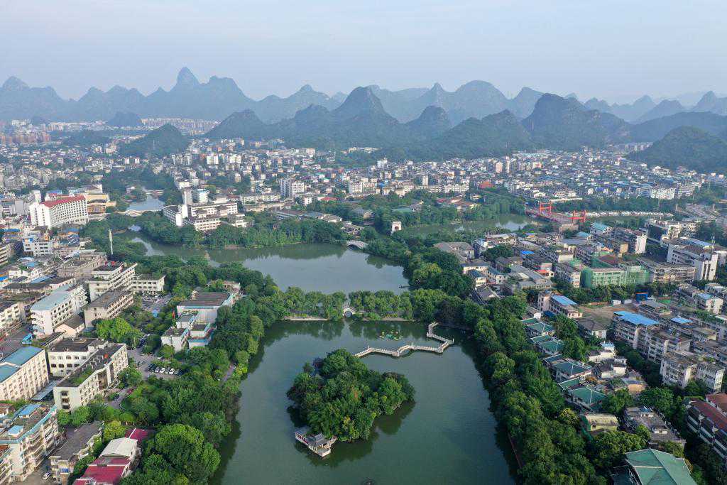 2019年7月1日,桂林市榕湖附近景观。连通榕湖的漓江从桂林城穿越而过,滋养着这方山川、这方百姓。