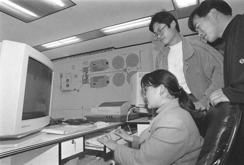 1997年,桂林污水处理厂技术员在查询污水处理数据。
