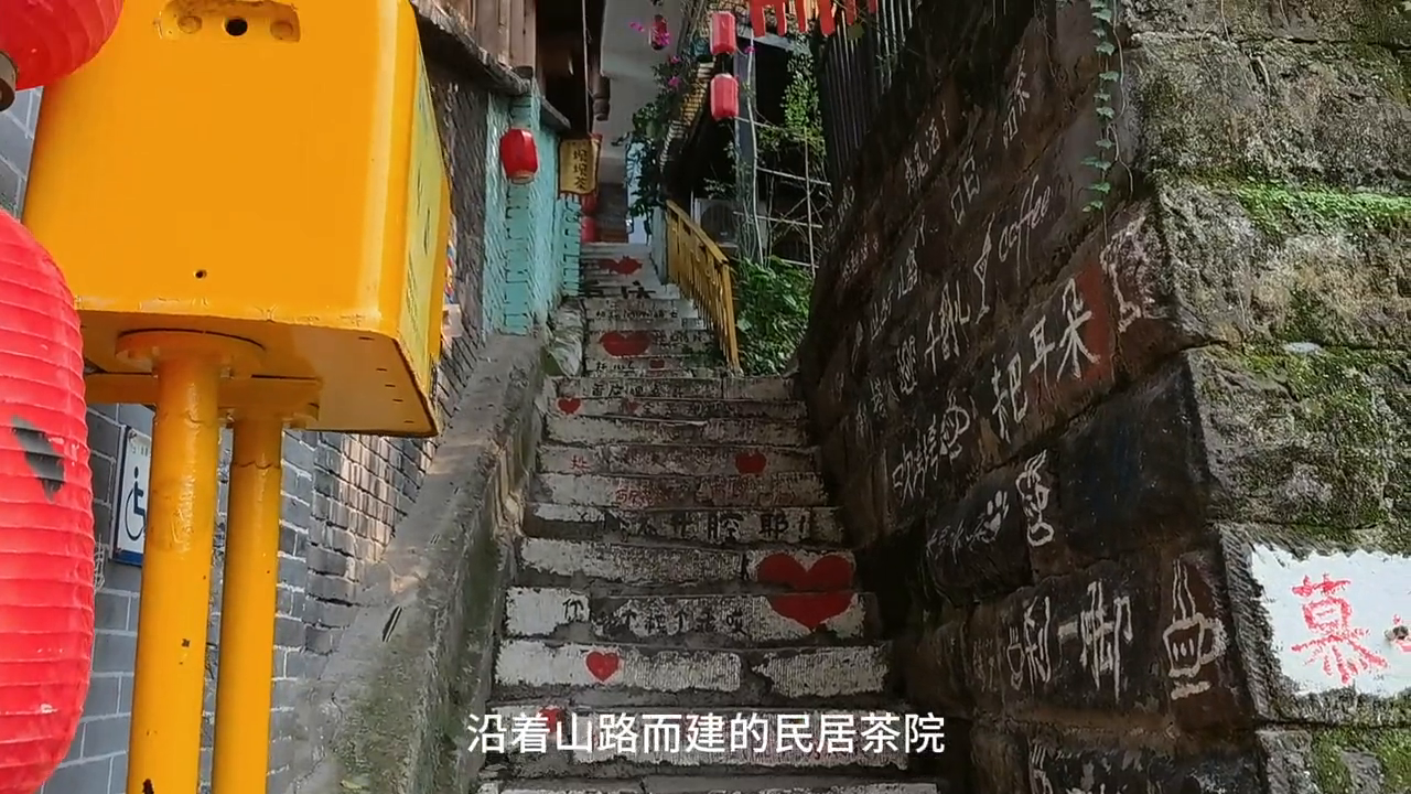 沿着江边只能步行的悬崖山路,拾阶而上,边欣赏山城风光,边了解历史文化。以前是一个钟楼,有各种各样的小吃熨斗糕,买个葱花滴?对。也有可以拍照打卡的文创店,偶遇一只小喵喵,耍懒又撒娇。走累了到茶园喝喝茶歇歇脚,还有变脸可以看。山城时光里,图书馆正在录宣传片,我在山城的时光里记录下这一刻。